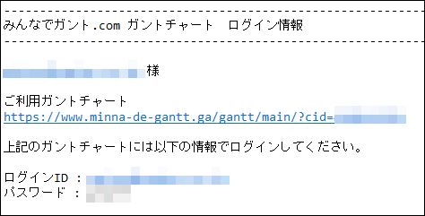 下図、ガントチャートのログイン情報を記載したメールを、そのユーザーに送信できます。