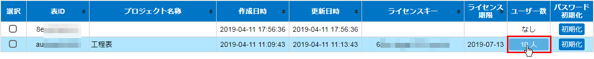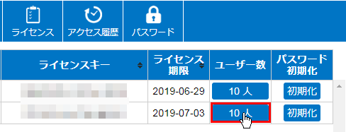 管理画面の一覧にある[ユーザー数]列の[人数が書いてある]ボタンを押します。