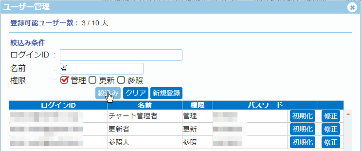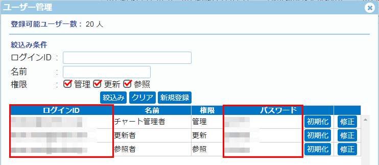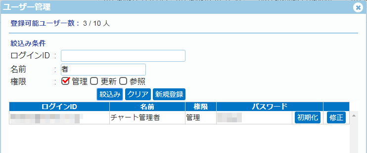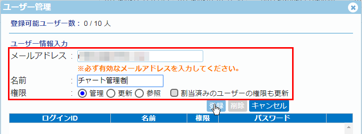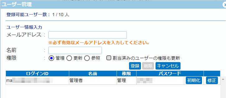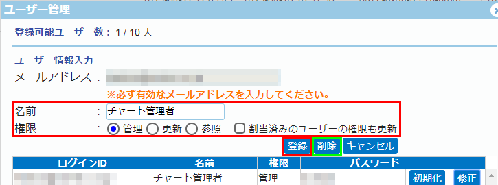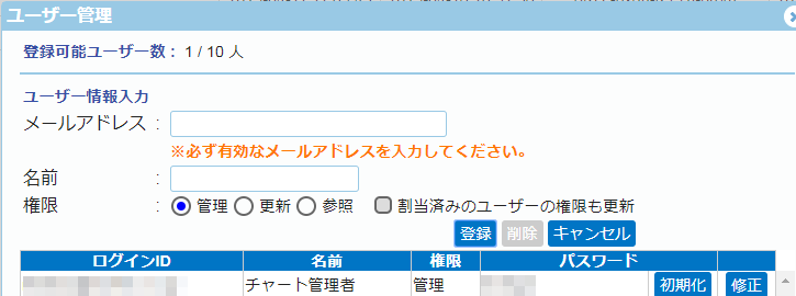 ※上記表示ユーザーは、「ユーザー登録」で登録したユーザーとなります。