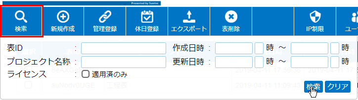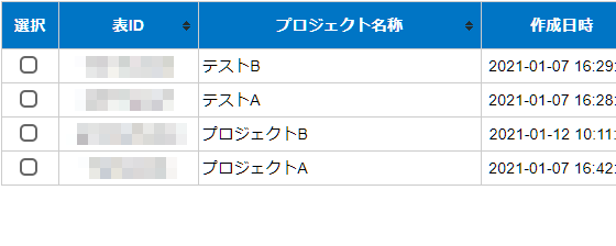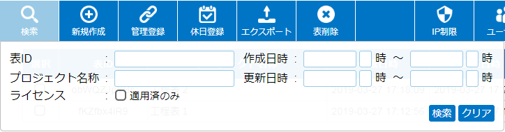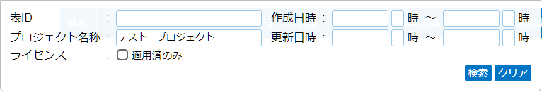 表ID、プロジェクト名では検索ワードを、スペースで区切っての検索に対応しています。