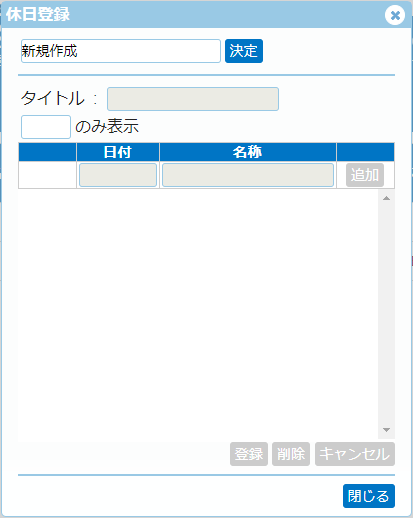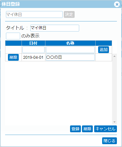 追加したい日付、名称を入力して「追加」ボタンを押すと、下の一覧に追加されます。