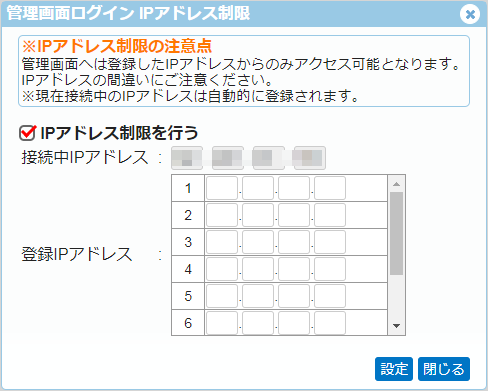 「IPアドレス制限する」をチェックしてください。