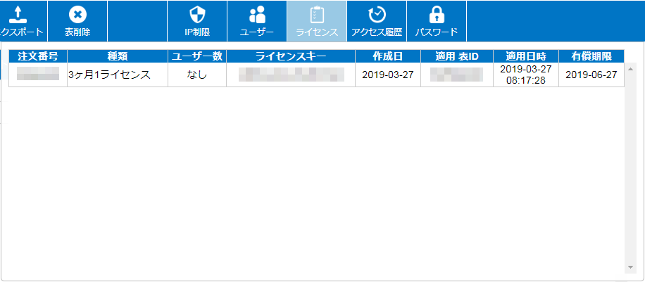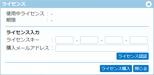 [ライセンスキー]、[ライセンス期限]、[ユーザー数]には適用したライセンスの情報が、それぞれ表示されます。