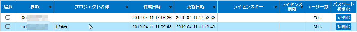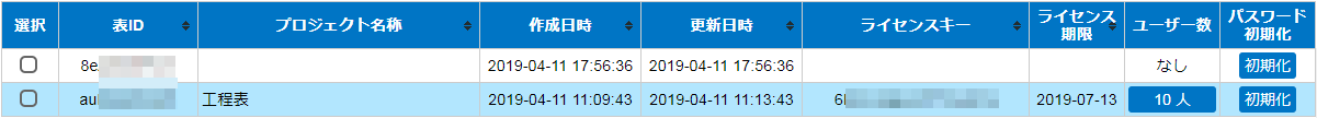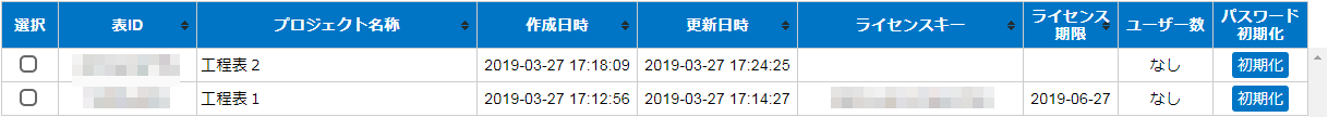 ライセンスを適用されたガントチャートおよび、管理登録されたガントチャートが一覧で表示されます。