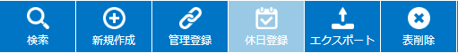 メニューボタン部の「休日登録」ボタンを押してください。