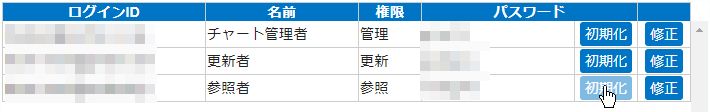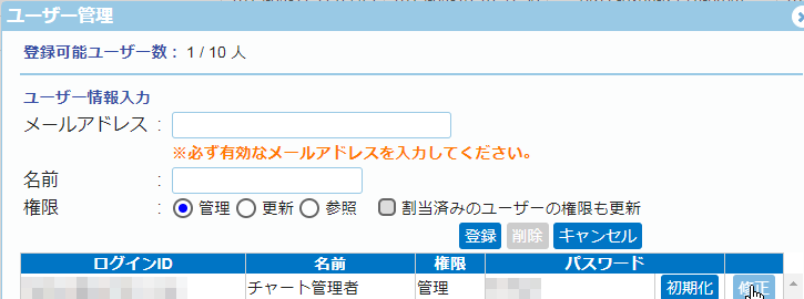 修正または削除を行いたいユーザーの「修正」ボタンを押します。