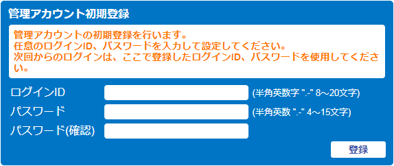 任意のログインIDとパスワードを設定します。ここで設定したログインIDとパスワードは今後、