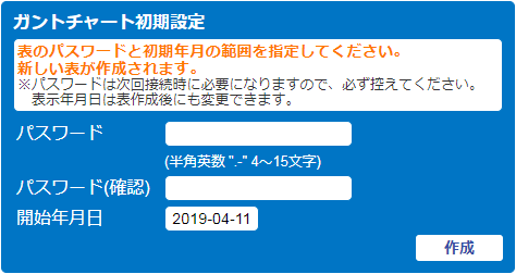 新規作成するガントチャートにログインするための、任意のパスワードを設定します。