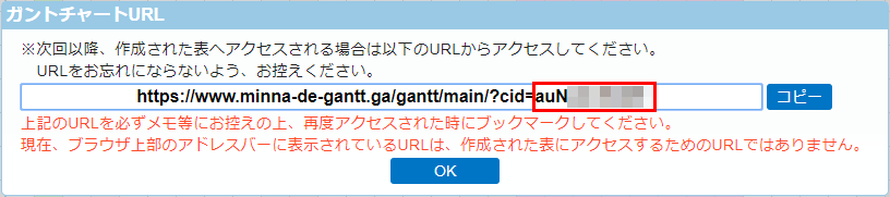 ガントチャートの画面が表示されます。表示されたガントチャートのURLをお控え下さい。