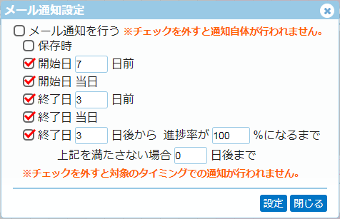 メール通知させるには[メール通知を行う]を必ずチェックONにして下さい。(初期値:OFF)