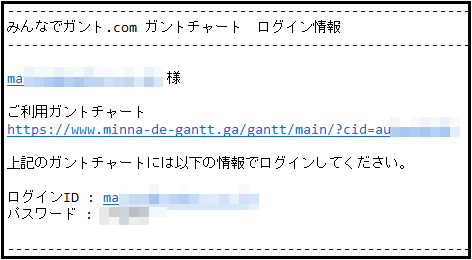 上図メールの「以下のURLからガントチャート画面がご利用いただけます。」のURLにアクセスします。