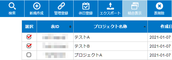 結合したいガントチャートを複数選択し(最大数5つ)、メニューボタン部の「結合表示」ボタンを押してください。