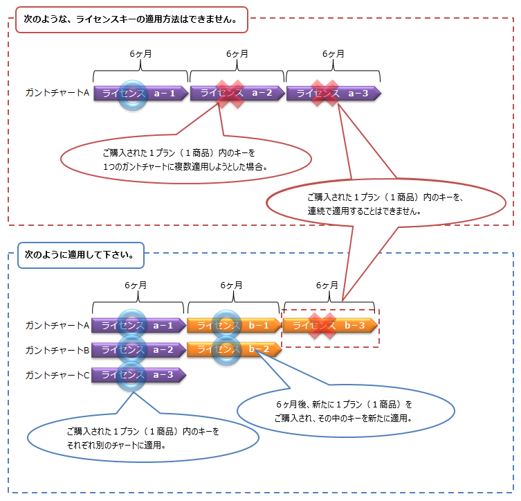 以下にみんなでガントで採用しているライセンスキーについてご説明致します。