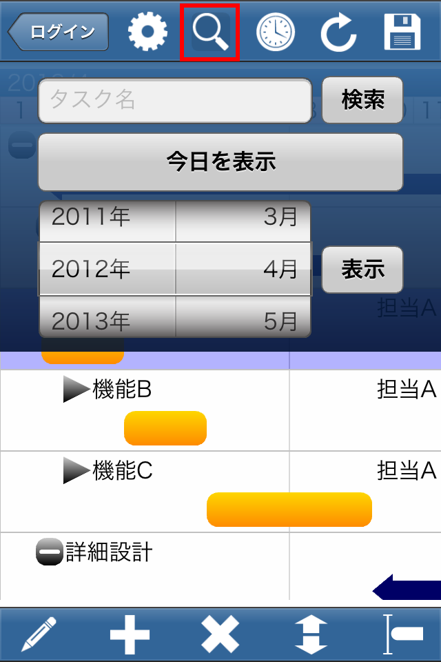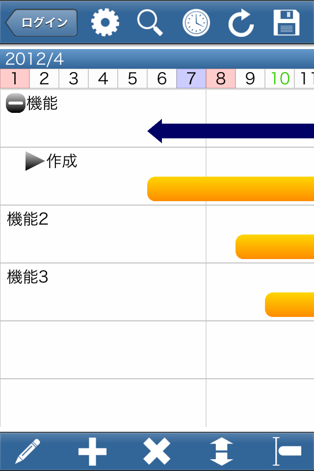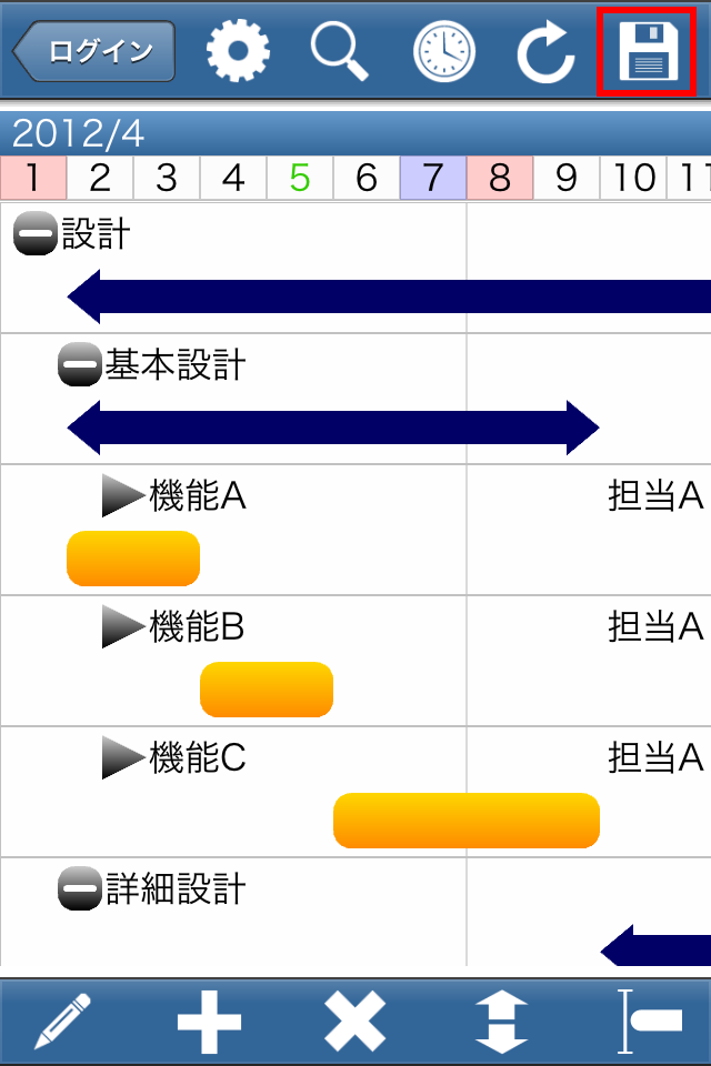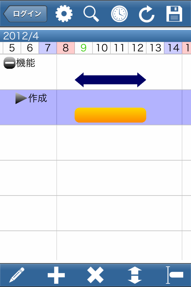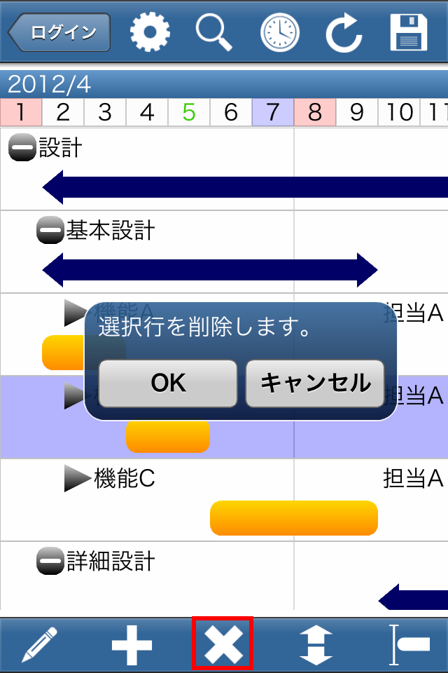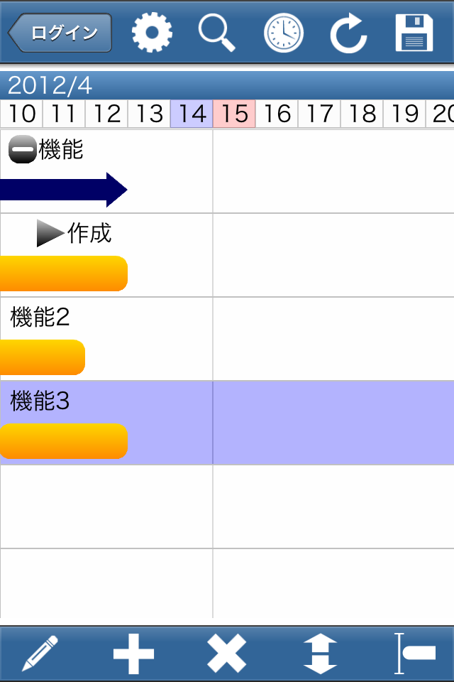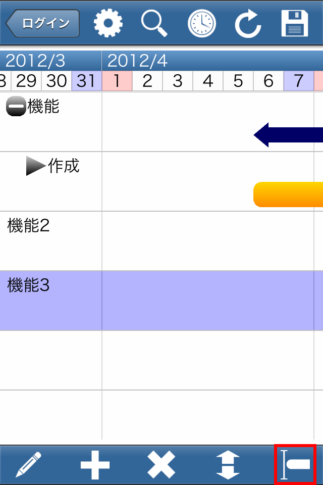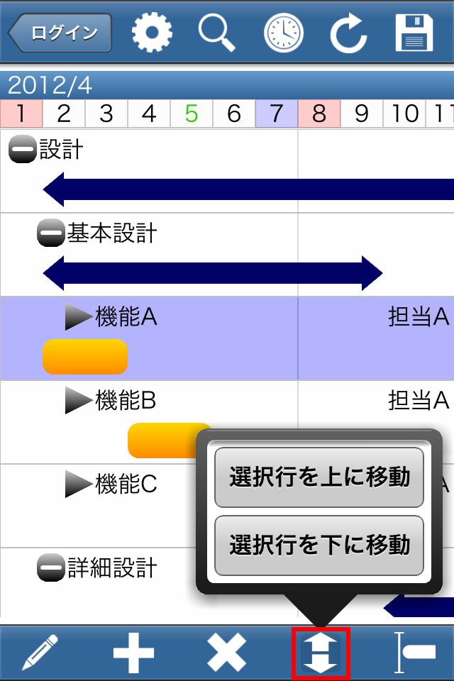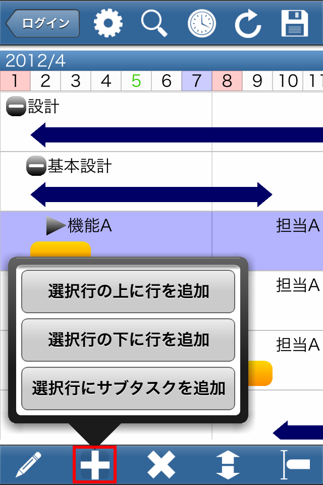 1.タスクを作成または修正したい場合は当該行をタップし、行を選択状態にします。