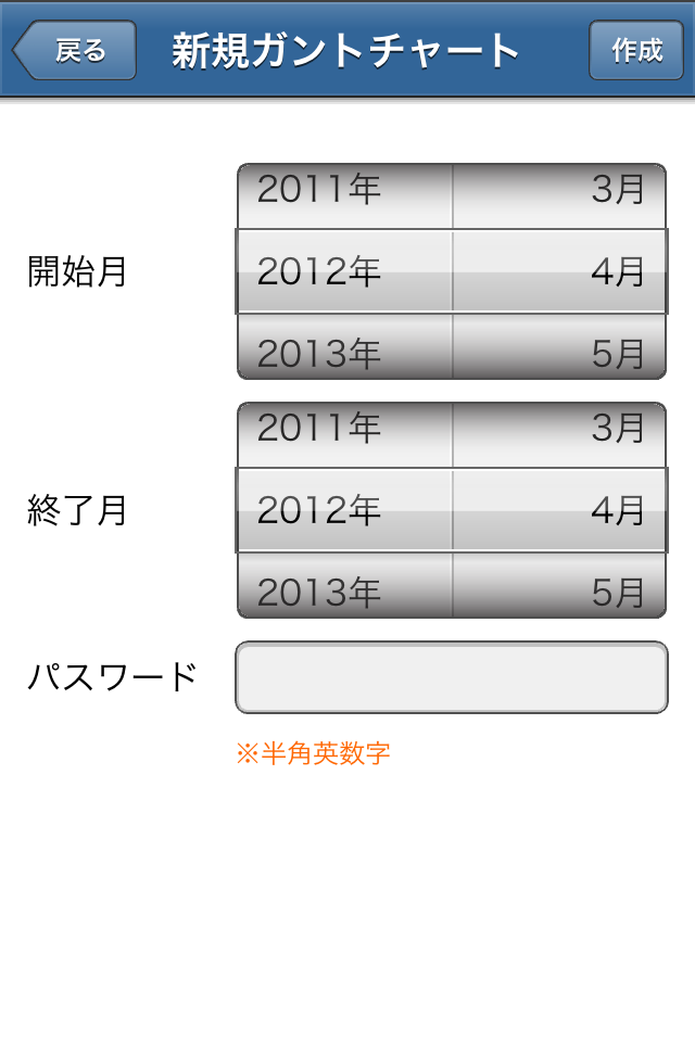 2.チャートの開始月と終了月、およびパスワードを設定してください。