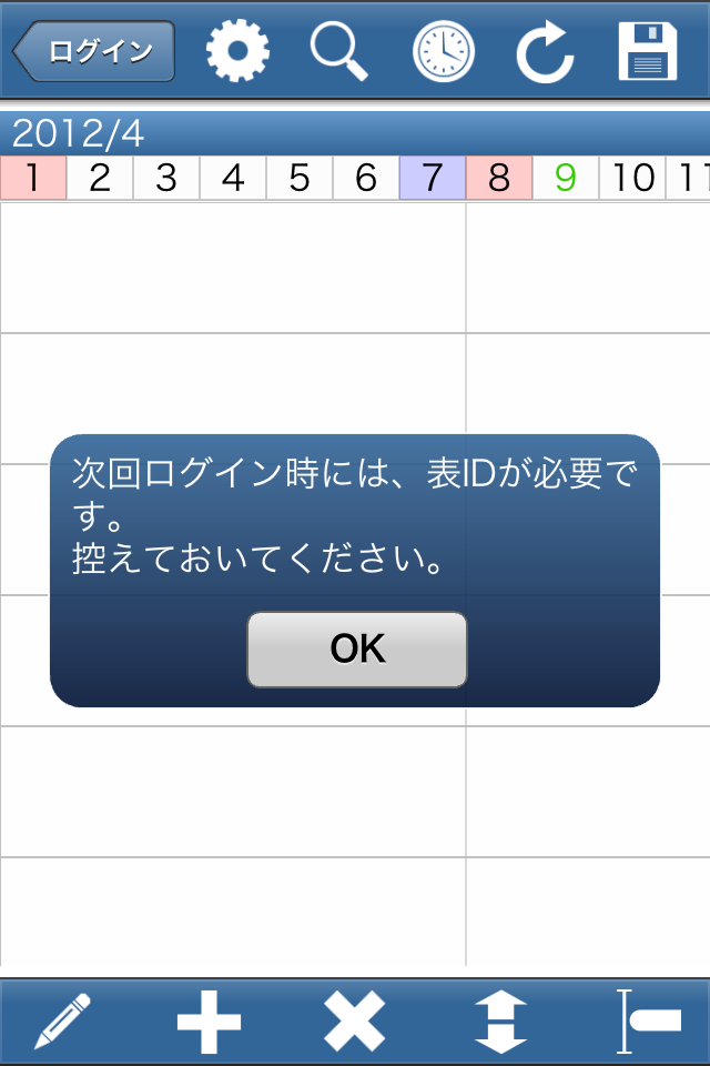 2.左図で「OK」をタップすると、右図の表示になりますので、表IDをお控えください。