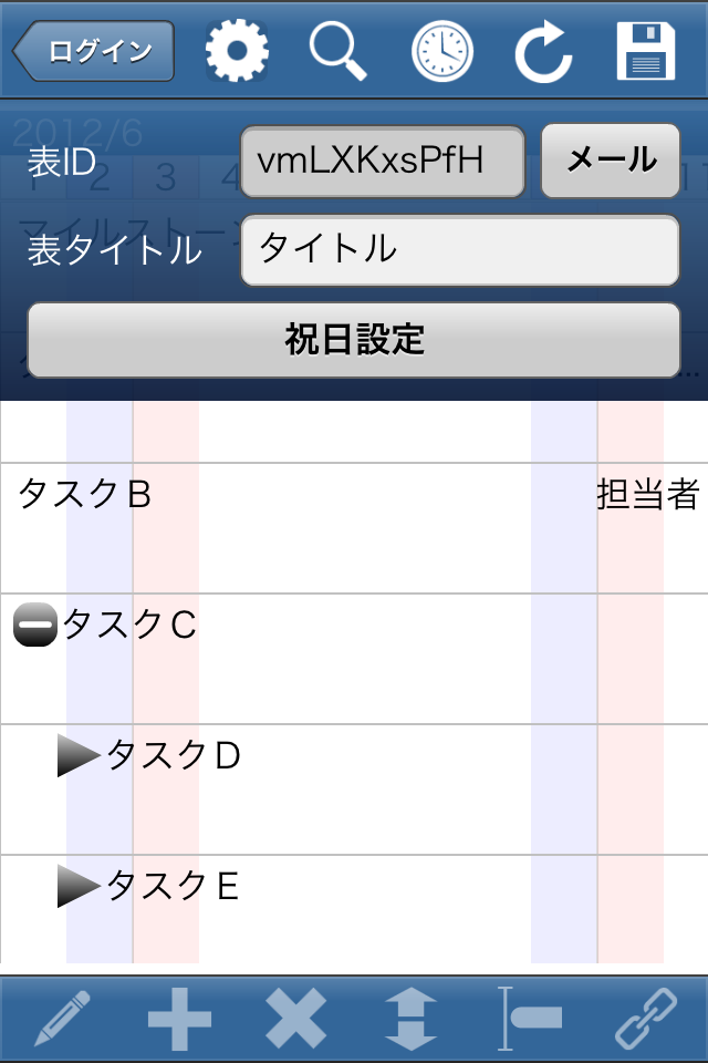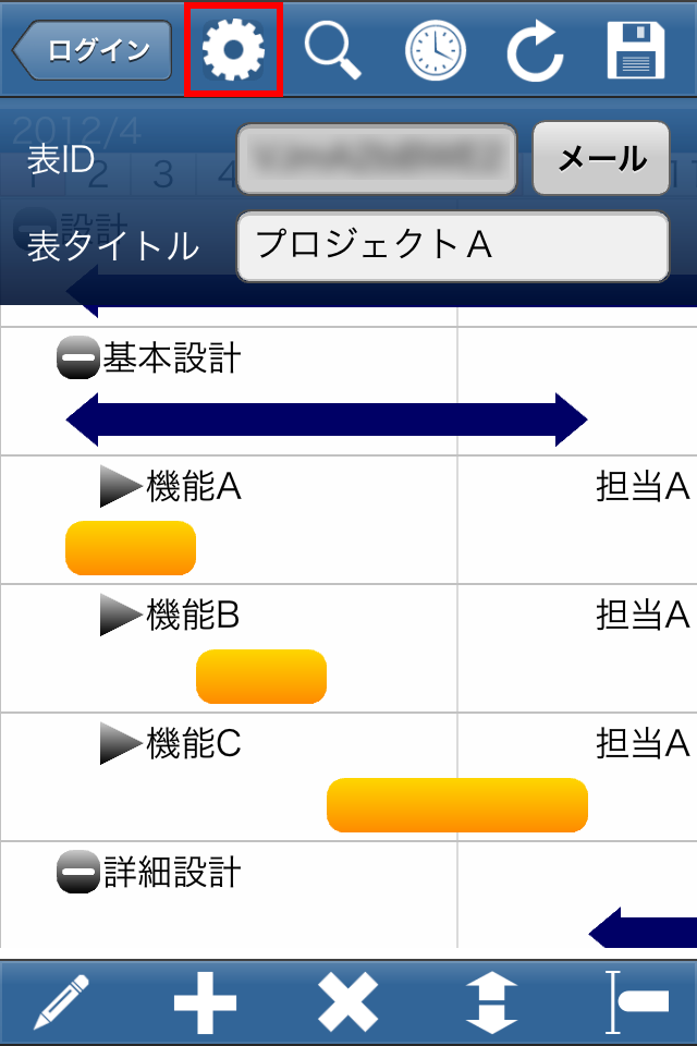 ※表ID、表タイトル、「メール」ボタンは上図の枠のボタンをタップすることで再表示可能です。