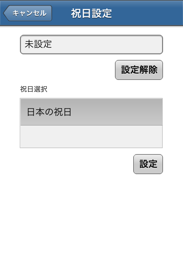 2.設定する祝日を選択し、「設定」ボタンをタップします。(現状では日本の祝日のみです)
