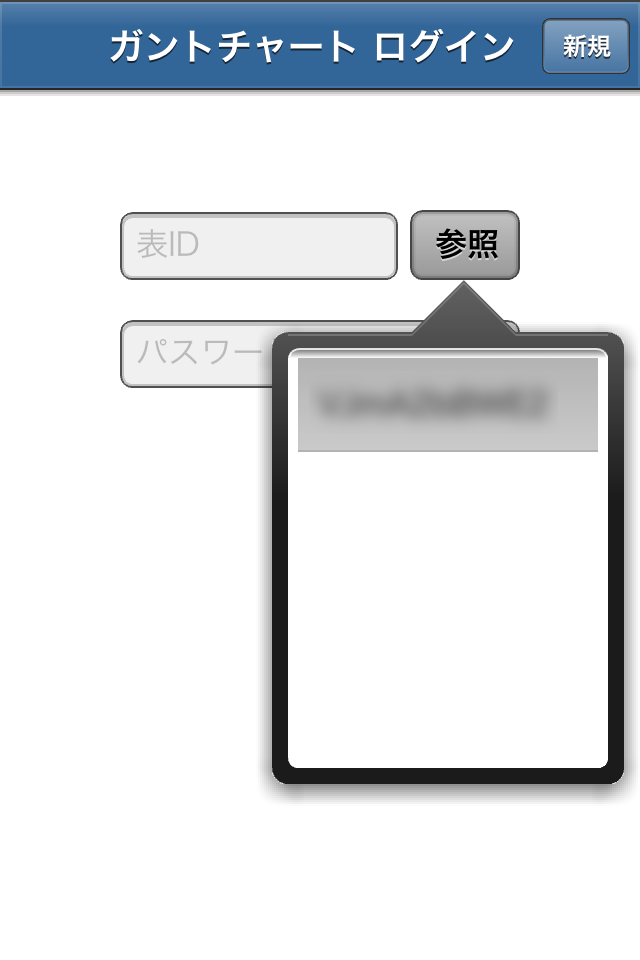 2.「参照」ボタンをタップすると、ご使用のスマートフォンで使用したチャートの表IDの一覧が表示され、そこからタップで選択可能です。