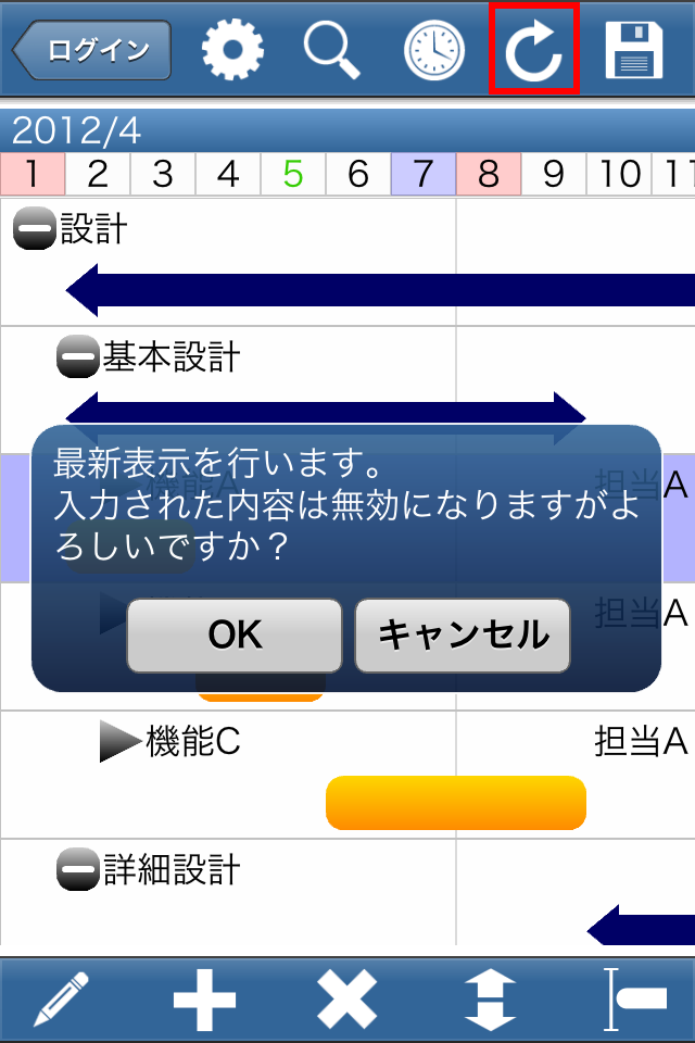 2.「反映」ボタンをタップすると、入力されたタスクがチャート画面に表示されます。